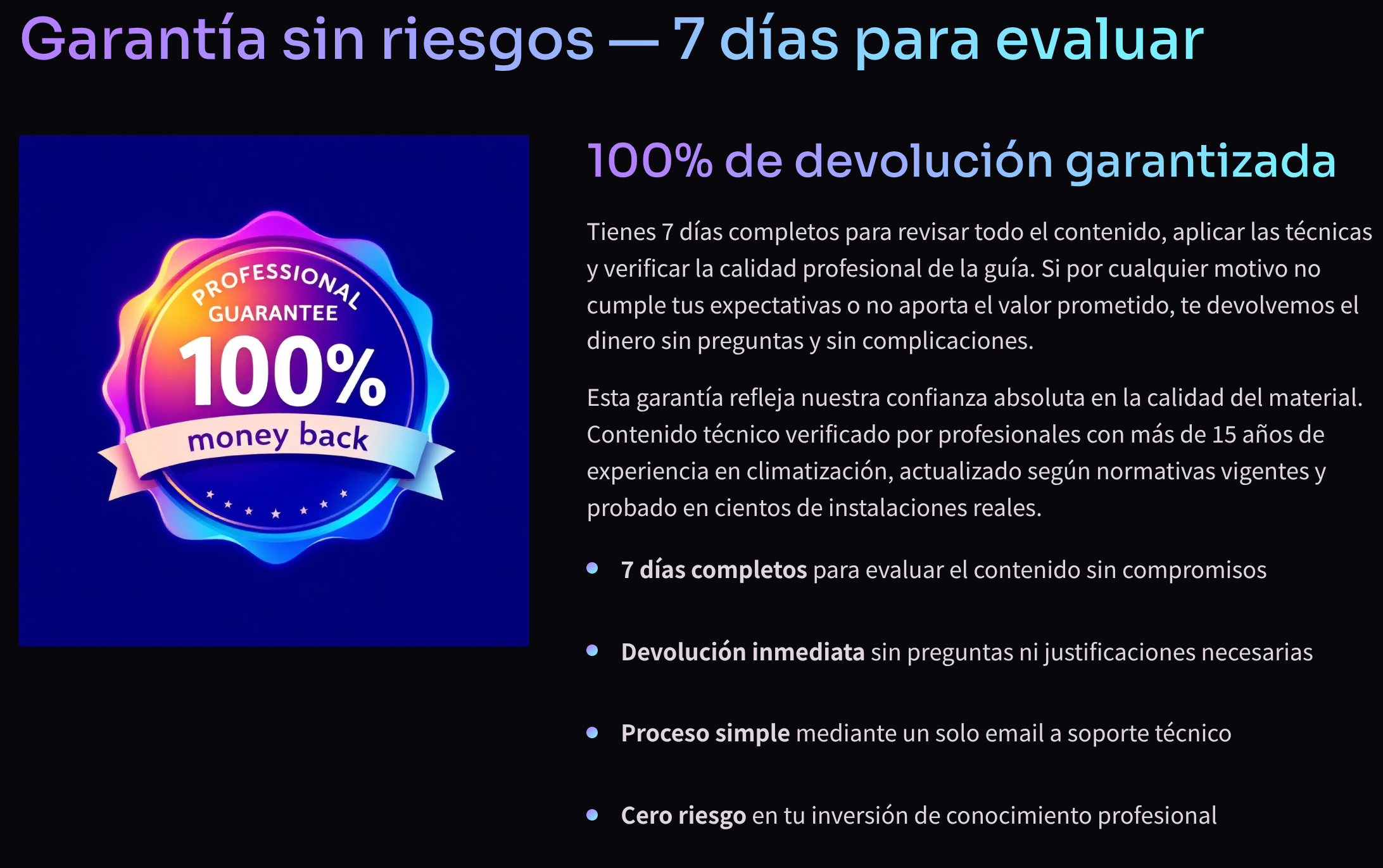 Si dentro de los primeros 7 días sentís que el material no es para vos, o simplemente no cumplió tus expectativas, te devolvemos el dinero sin preguntas y sin vueltas.